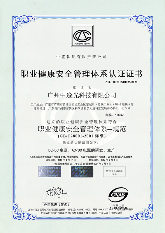 職業(yè)健康安全管理體系認(rèn)證證書